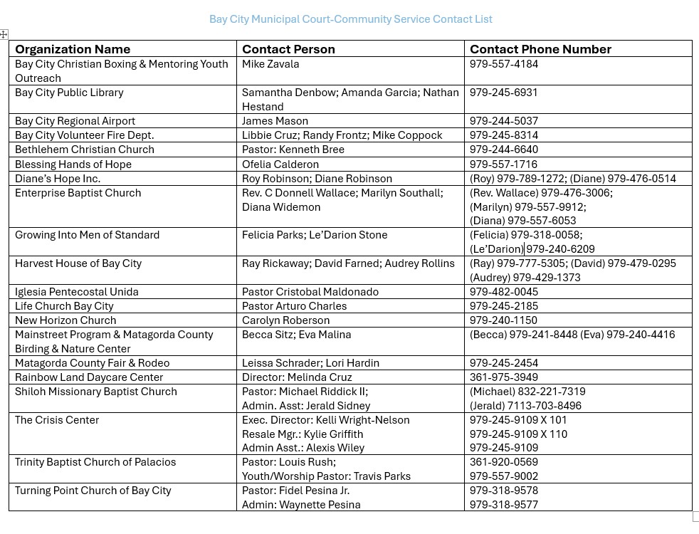 Our court requires that community service be performed at one of our preapproved community service providers. If you wish to perform community service for a church, government agency or non-profit organization that is not preapproved, you must obtain permission from the court.